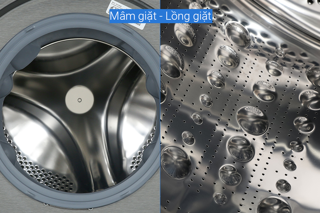– Lồng giặt bằng từ thép không gỉ sáng bóng, hạn chế mảng bám và gỉ sét trong quá trình sử dụng.