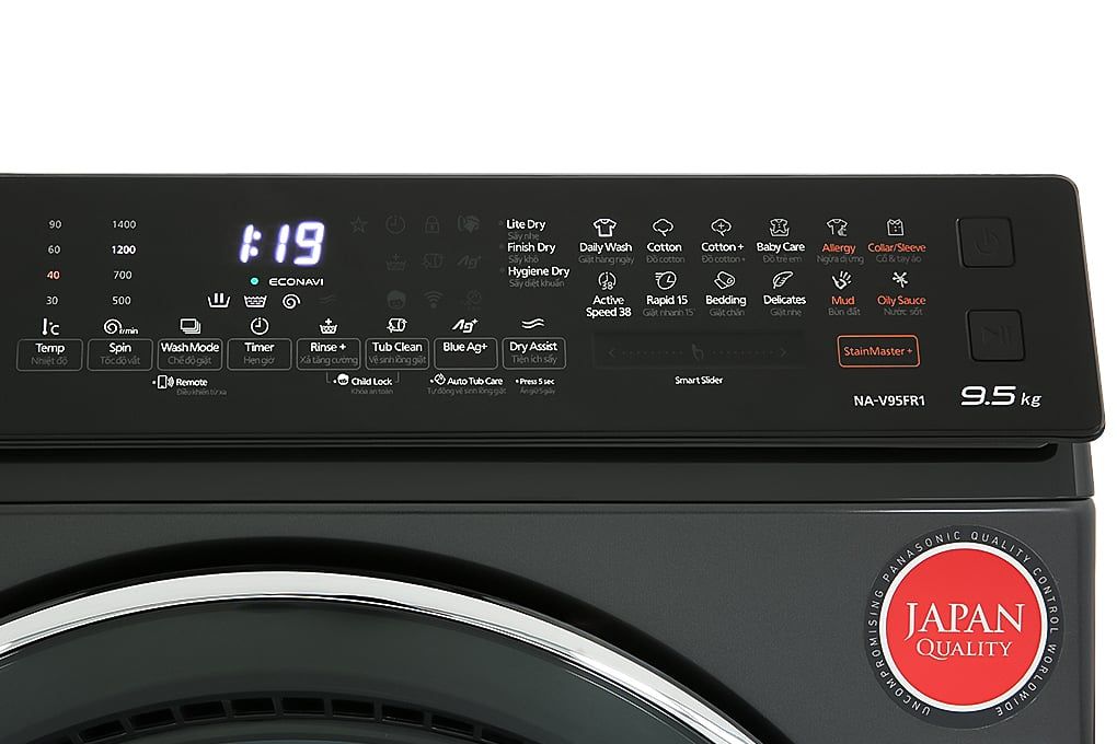 – Máy giặt Panasonic NA-V95FR1BVT có khối lượng giặt tối đa là 9.5 kg, sấy tiện ích 2 kg, đáp ứng nhu cầu giặt giũ của gia đình từ 5 – 7 thành viên, hoặc gia đình có ít thành viên hơn nhưng nhu cầu giặt giũ cao.