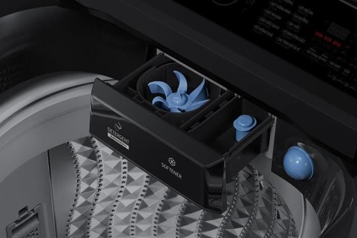 Với dung tích 13kg, máy giặt đáp ứng nhu cầu giặt giũ lớn, phù hợp cho gia đình đông người hoặc cần giặt các vật dụng lớn như chăn mền. Thiết kế cửa trên tiện lợi cùng màu sắc đen sang trọng, máy giặt không chỉ là thiết bị gia dụng mà còn là điểm nhấn thẩm mỹ cho không gian sống.