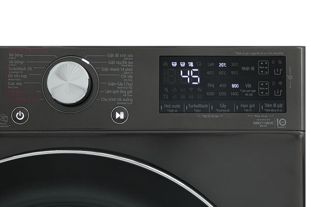 – Bảng điều khiển cảm ứng song ngữ Anh – Việt có nút xoay, màn hình LED hiển thị thông số rõ ràng giúp bạn dễ dàng thao tác và lựa chọn chương trình giặt theo nhu cầu.