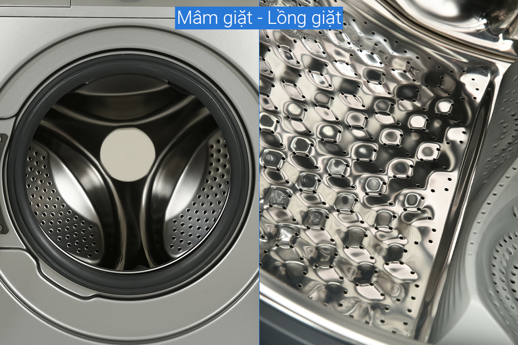 – Lồng giặt chất liệu thép không gỉ bóng sáng, hạn chế rỉ sét, có tính thẩm mỹ cao, được chế tạo đảm bảo hiệu suất giặt đồ, hạn chế tích tụ mảng bám, chất bẩn.