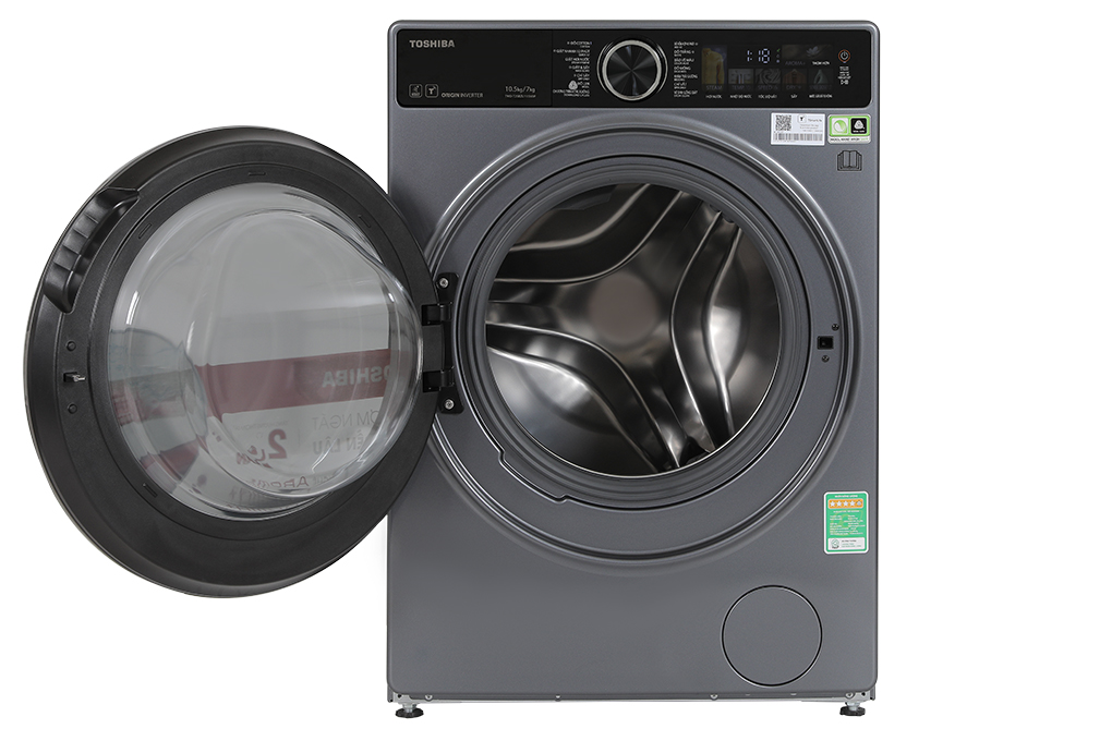 – Máy giặt sấy Toshiba Inverter TWD-T25BZU115MWV(MG) thuộc dòng máy giặt lồng ngang, sở hữu gam màu xám đậm nên dễ dàng phối hợp với các nội thất khác bên trong khu vực giặt giũ của gia đình bạn.