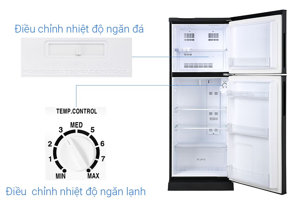 Thiết kế truyền thống ngăn đá trên, màu đen hiện đại