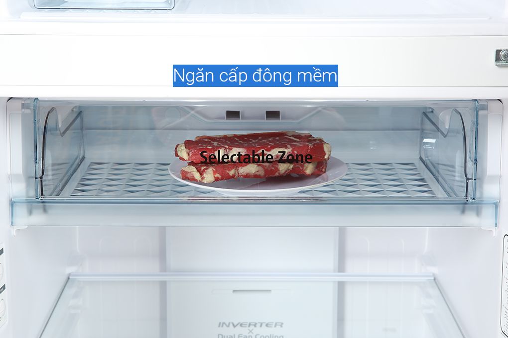– Ngăn chuyển đổi đa năng Selectable Zone có núm vặn điều chỉnh lượng khí lạnh lưu trữ trong ngăn tùy vào nhu cầu để bảo quản thịt cá. Nhiệt độ ngăn là 1°C đến 3°C hoặc -3°C đến -1°C.