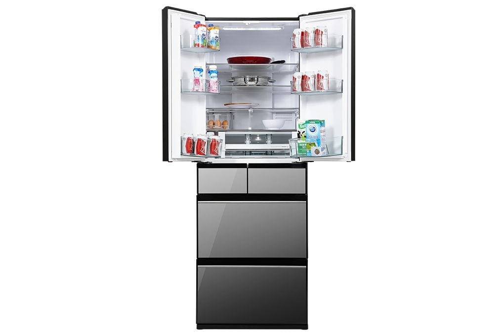 – Hitachi Inverter 540 lít R-HW540RV(X) thuộc dòng tủ lạnh Multi Door, được thiết kế 6 cánh với chất liệu cửa tủ bằng mặt gương pha lê bóng bẩy, góp phần sang trọng cho các không gian nhà bếp hiện đại.