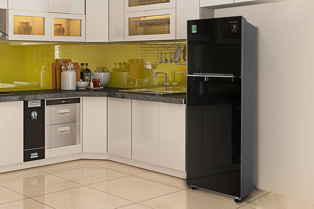 Tủ lạnh Samsung Inverter với thiết kế thời thượng, sắc đen sang trọng nhưng vẫn gọn gàng vừa tiết kiệm không gian cũng vừa đóng vai trò điểm nhấn nổi bật cho căn bếp của bạn.