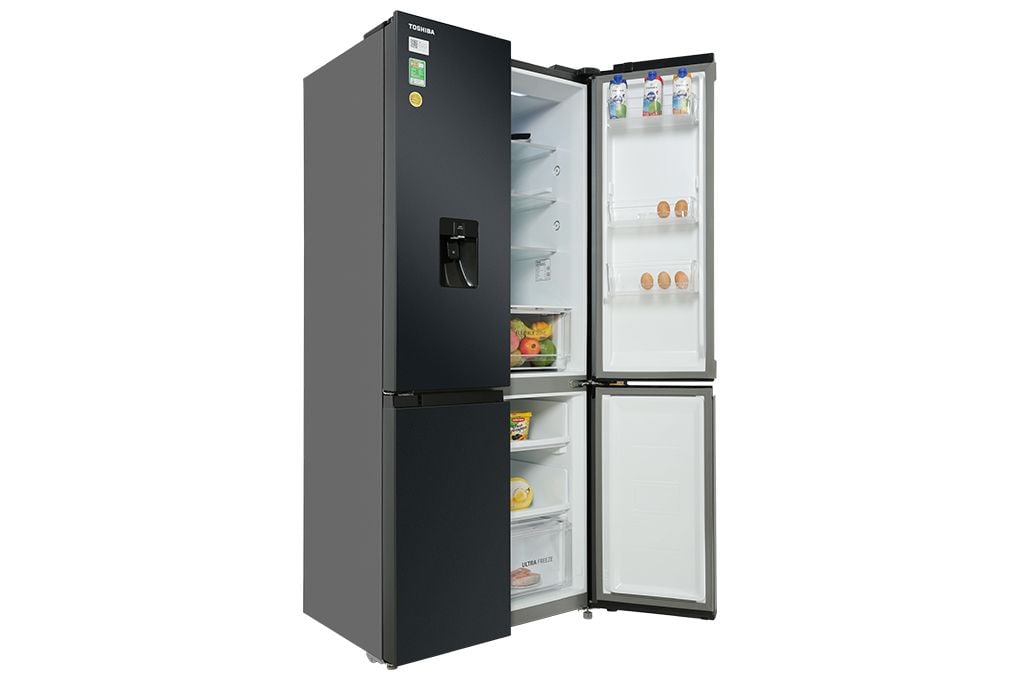 – Mẫu tủ lạnh nhiều cửa Toshiba phù hợp cho mọi vị trí trong không gian nhà bếp hiện đại nhờ kiểu dáng sang trọng và gam màu xám dễ phối hợp với các nội thất khác xung quanh.