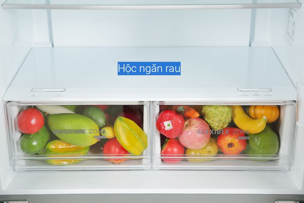 – Ngăn rau củ Moisture Zone: Giúp tăng cường và duy trì độ ẩm phù hợp, nhờ đó giữ được độ tươi ngon của rau củ quả, tránh tình trạng bị úng hoặc bị héo trong suốt thời gian bảo quản.